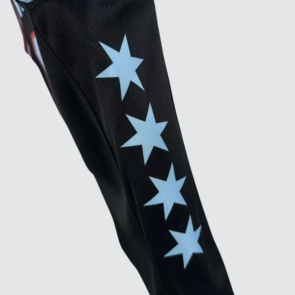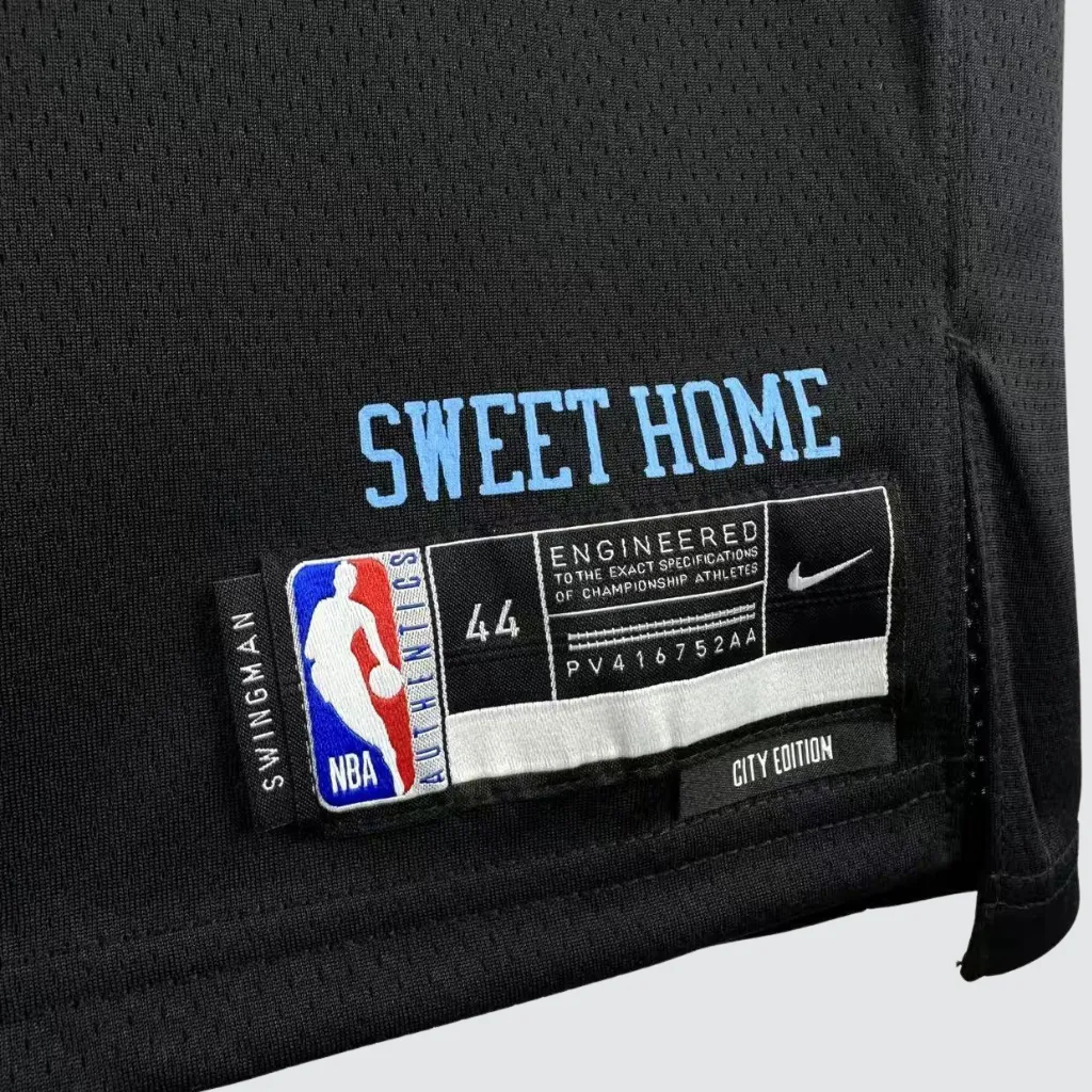 Diferente da versão original com base branca, a City Edition 2025/26 adota o preto como cor principal. Assim, o uniforme cria um contraste marcante e sofisticado. Ao mesmo tempo, os detalhes em azul e vermelho aparecem invertidos, representando fielmente as cores da bandeira de Chicago e trazendo uma leitura contemporânea ao design clássico.