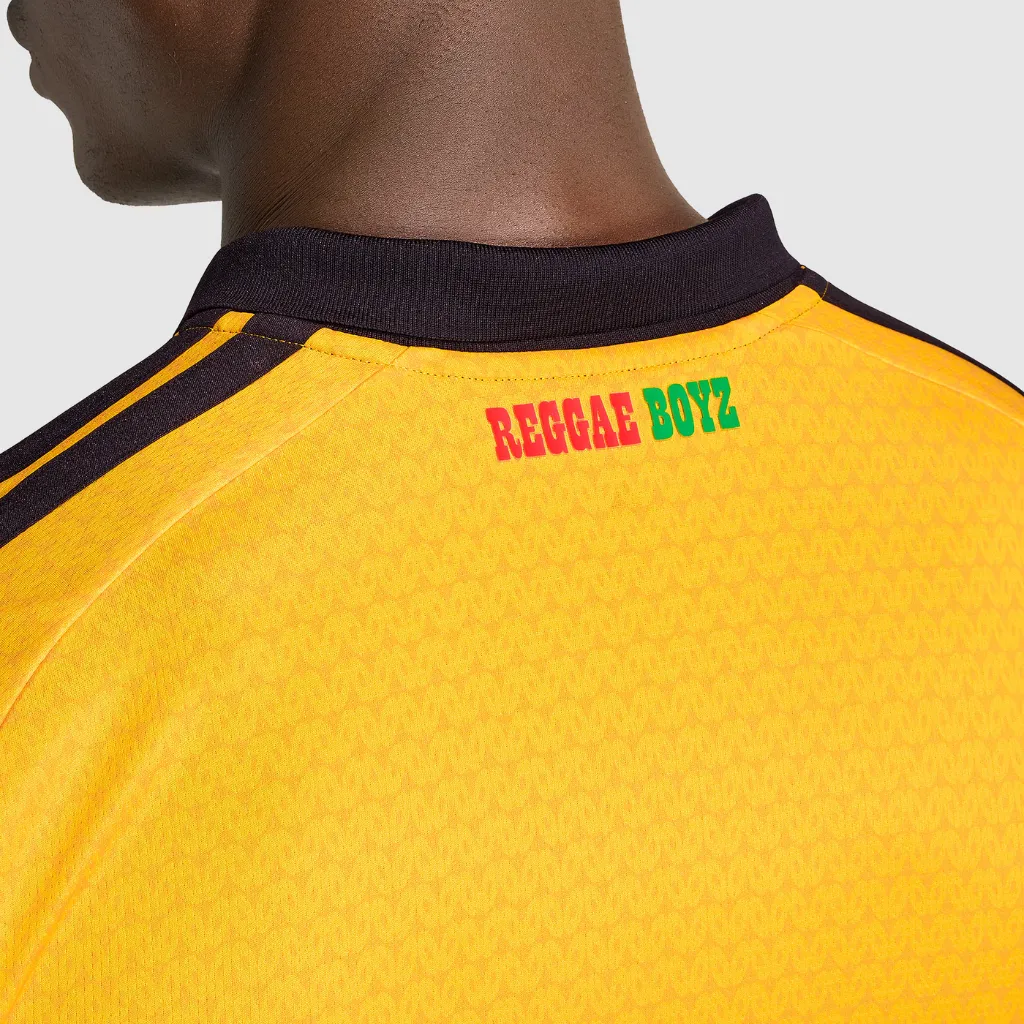 camisa titular Jamaica 2026 2027 adidas transforma música, identidade e orgulho nacional em um uniforme vibrante que representa os Reggae Boyz dentro e fora de campo.