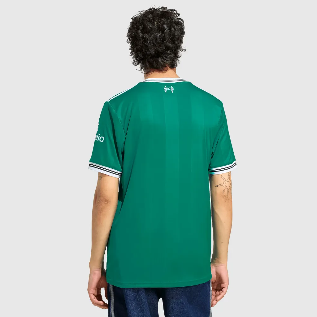 camisa terceira Liverpool adidas 2025 2026 reconecta o presente dos Reds a uma das fases visuais mais marcantes do clube, criando uma peça carregada de significado.