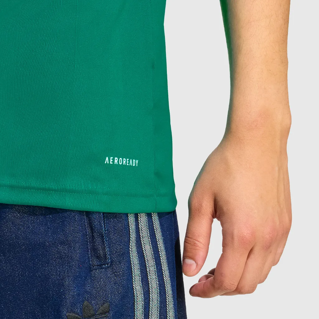 logo Trefoil reforça a ponte entre futebol e moda, um símbolo cultural que carrega legado e autenticidade.No peito, o destaque fica para o