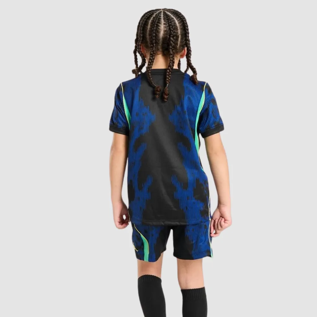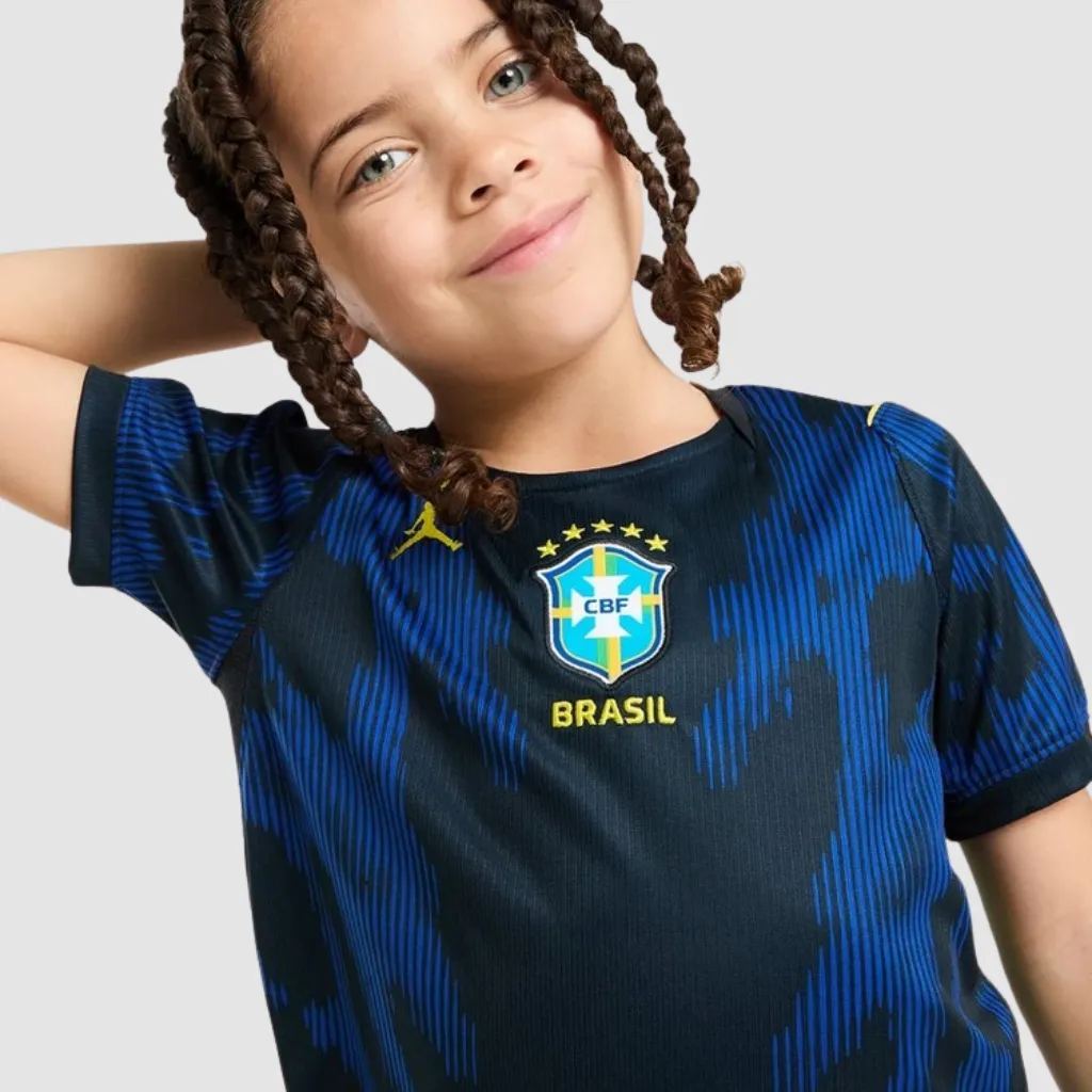Mini uniforme preto e azul royal inspirado na nova era da Seleção com a Jordan. Design moderno com tecnologia Dri‑FIT para conforto no dia a dia.