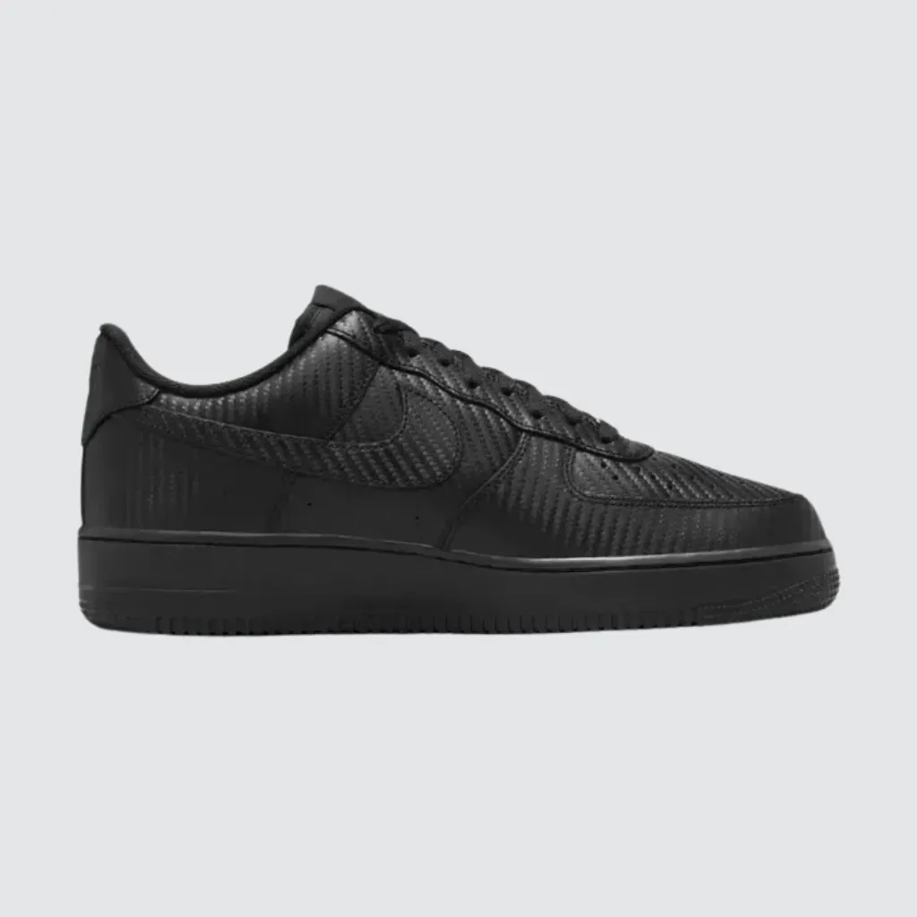 O Nike Air Force 1 Low Black Carbon Fiber leva um dos modelos mais influentes do streetwear para um novo território visual. Conhecido por sua presença constante no cenário urbano, o Air Force 1 evolui nesta versão ao incorporar uma construção inspirada na fibra de carbono, trazendo uma leitura moderna e futurista. Por isso, o Nike Air Force 1 Low Black Carbon Fiber se destaca como uma interpretação ousada que mantém o DNA clássico do AF1 enquanto explora novas texturas e sensações visuais.